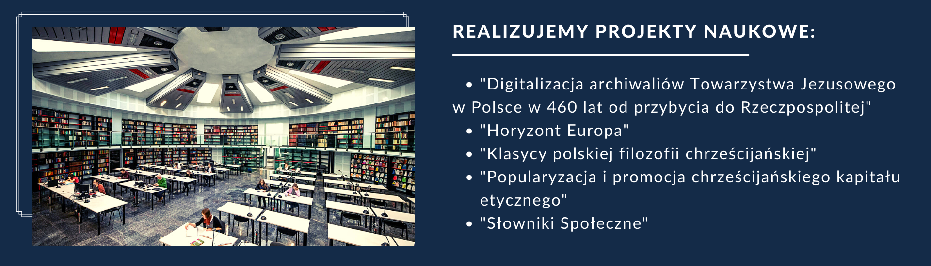 Digitalizacja archiwaliów Towarzystwa Jezusowego w Polsce w 460 lat od przybycia do Rzeczpospolitej Popularyzacja i promocja chrześcijańskiego kapitału etycznego Horyzont Europa PFRON Klasycy polskiej filozofii chrześcijańskiej WIĘCEJ